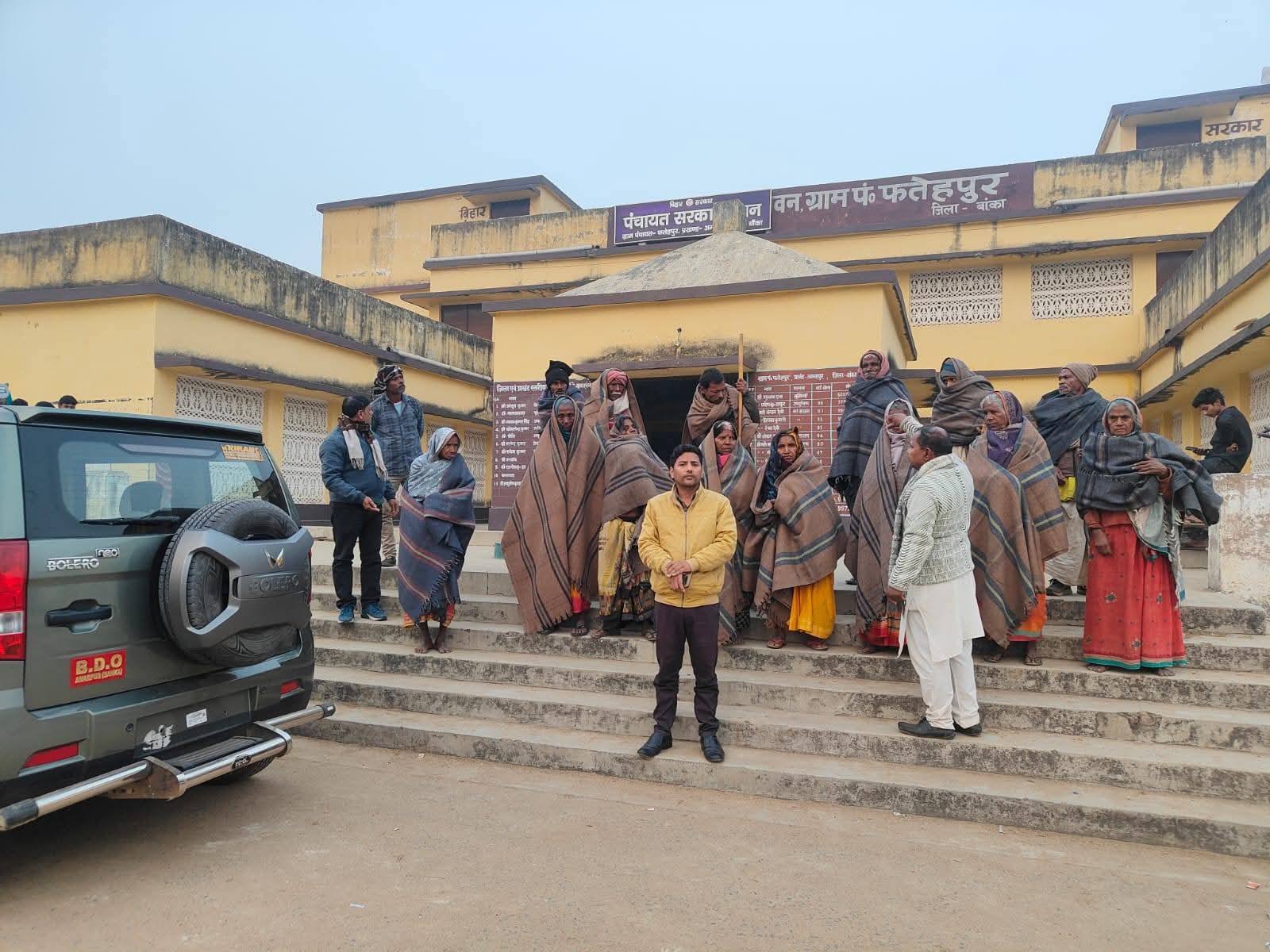 आज प्रखंड विकास पदाधिकारी अमरपुर के नेतृत्व में ग्राम पंचायत फतेहपुर एवं बल्लिकित्ता में जरूरतमंद लाभार्थियों के बीच ऊनी कंबलों का वितरण किया गया। यह अभियान सर्दियों की तेज ठंड और शीतलहर से ग्रामीणों को राहत देने के उद्देश्य से आयोजित किया गया।
