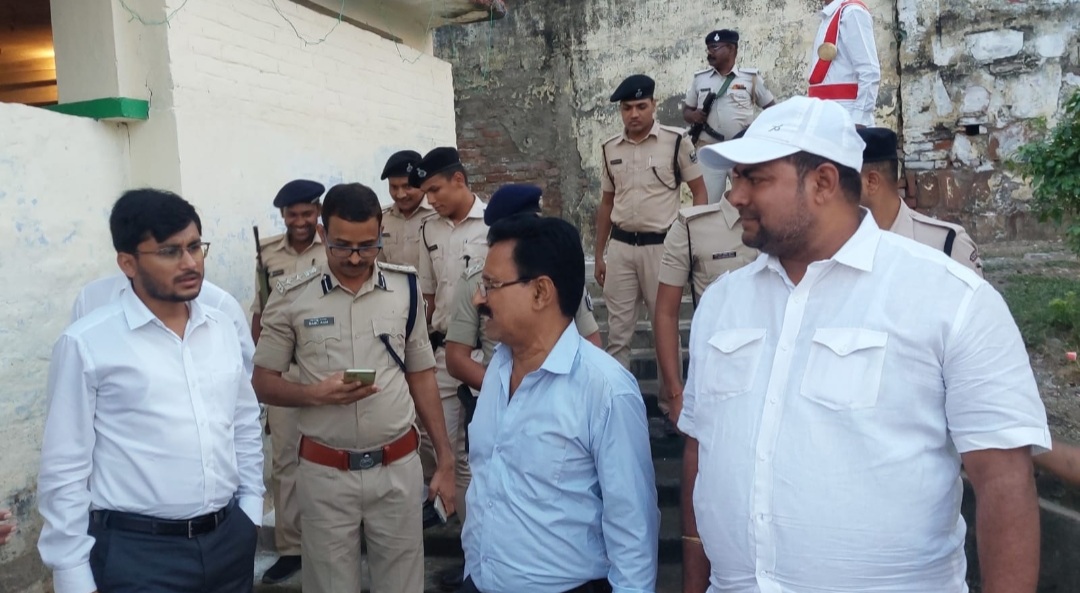डीएम सुब्रत कुमार सेन, एसएसपी बाबूराम, सदर एसडीओ, नगर आयुक्त के साथ चंपानदी विसर्जन घाट का निरीक्षण करने पहुंचे।