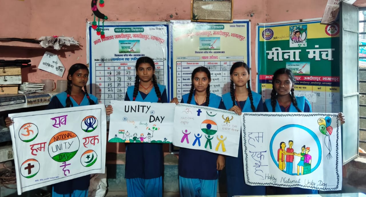 भागलपुर | राष्ट्रीय एकता दिवस के अवसर पर मध्य विद्यालय, जगदीशपुर में शुक्रवार को विशेष चेतना सत्र का आयोजन किया गया। इस अवसर पर विद्यालय परिवार ने देश की एकता और अखंडता बनाए रखने का संकल्प लिया। कार्यक्रम के दौरान विभिन्न सांस्कृतिक और सामाजिक गतिविधियों के माध्यम से विद्यार्थियों ने समाज में एकता और सौहार्द का संदेश दिया।