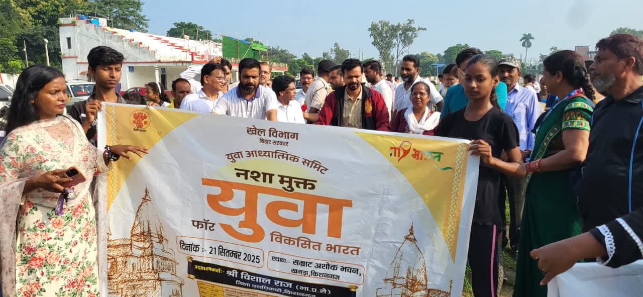 सूचना एवं जनसंपर्क विभाग, बिहार सरकार के तत्वावधान में शनिवार को किशनगंज में “नशा मुक्त युवा फॉर विकसित भारत” अभियान के तहत भव्य कार्यक्रम का आयोजन किया गया। कार्यक्रम के मुख्य अतिथि जिलाधिकारी श्री विशाल राज (भा.प्र.से) रहे। उन्होंने हरी झंडी दिखाकर अभियान का शुभारंभ किया और युवाओं को नशामुक्त जीवन जीने का संदेश दिया।