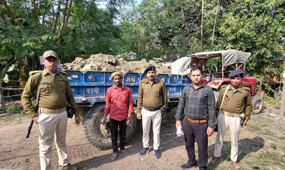 खनन विभाग की कार्रवाई में अवैध बालू लदा ट्रैक्टर जब्त