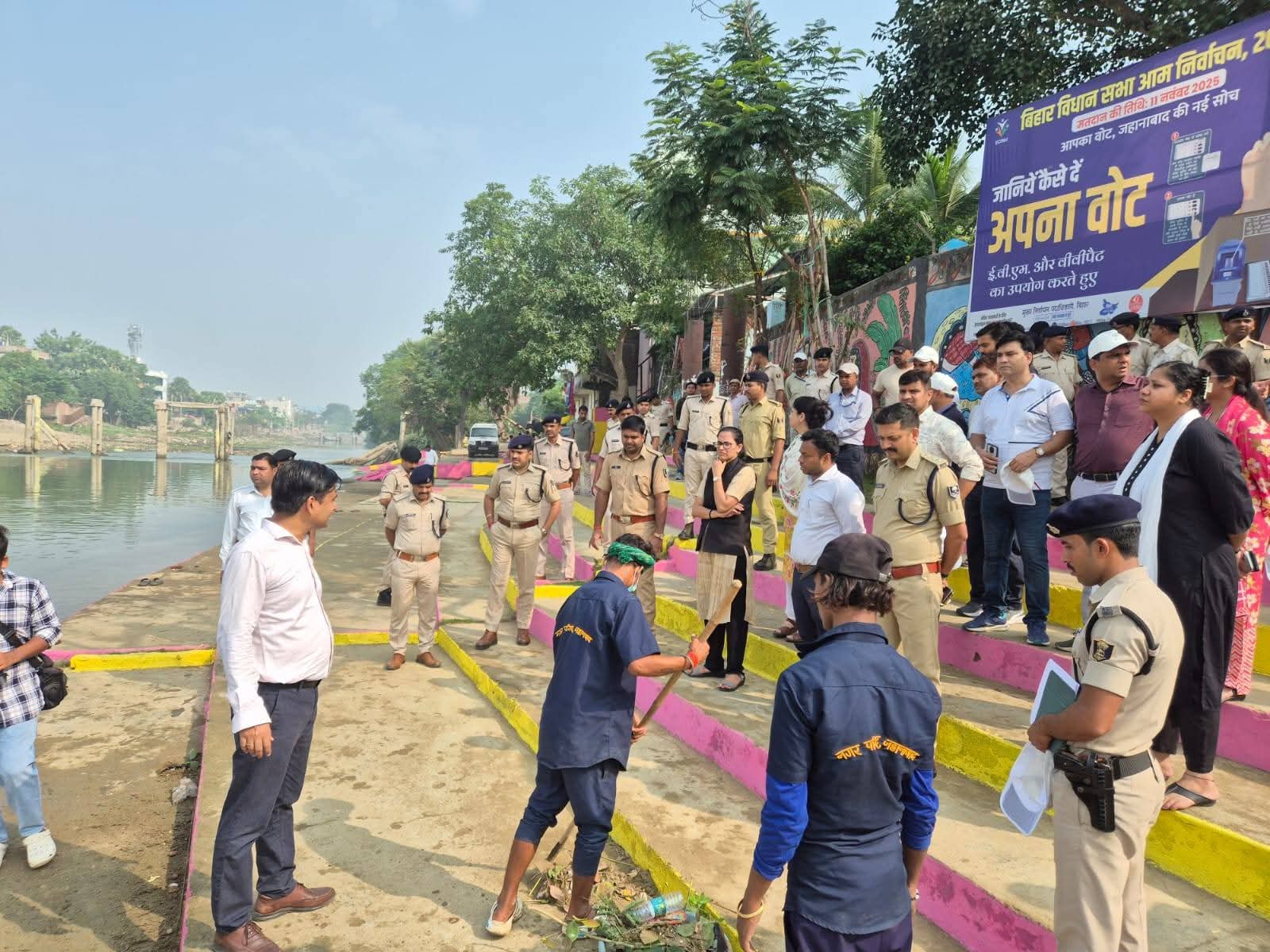 लोक आस्था के महापर्व छठ को शांतिपूर्ण, सुरक्षित और स्वच्छ वातावरण में सम्पन्न कराने को लेकर जिला प्रशासन पूरी तरह से सक्रिय हो गया है। इसी क्रम में आज सुबह जिला पदाधिकारी, जहानाबाद एवं पुलिस अधीक्षक, जहानाबाद द्वारा नगर क्षेत्र अंतर्गत ठाकुरबाड़ी स्थित संगम घाट, गौरक्षणी का संयुक्त निरीक्षण किया गया।