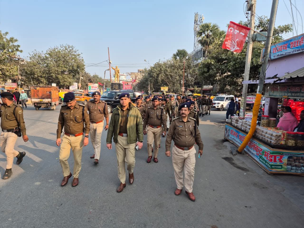 जहानाबाद। सरस्वती पूजा 2026 एवं आगामी गणतंत्र दिवस के अवसर पर जिले में शांति, सुरक्षा और विधि-व्यवस्था बनाए रखने के उद्देश्य से पुलिस प्रशासन द्वारा लगातार सतर्कता बरती जा रही है। इसी क्रम में आज दिनांक 22 जनवरी 2026 को पुलिस अधीक्षक, जहानाबाद एवं अनुमंडल पुलिस पदाधिकारी सदर तथा पुलिस उपाधीक्षक (यातायात) के नेतृत्व में सशस्त्र बल के साथ नगर क्षेत्र में फ्लैग मार्च किया गया।