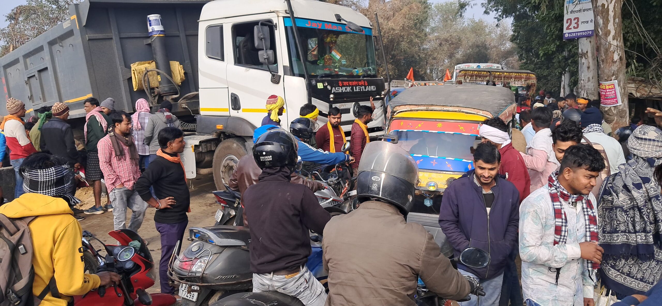 भागलपुर–दुमका मुख्य मार्ग पर शनिवार को उस समय अफरातफरी मच गई, जब टूटे पुल के समीप सड़क के बीच एक हाईवा गाड़ी खड़ी कर गिट्टी गिराई जाने लगी। इस कारण मार्ग पूरी तरह अवरुद्ध हो गया और देखते ही देखते सड़क के दोनों ओर वाहनों की लंबी कतार लग गई। जाम की स्थिति कई घंटों तक बनी रही, जिससे आम लोगों को भारी परेशानी का सामना करना पड़ा।
