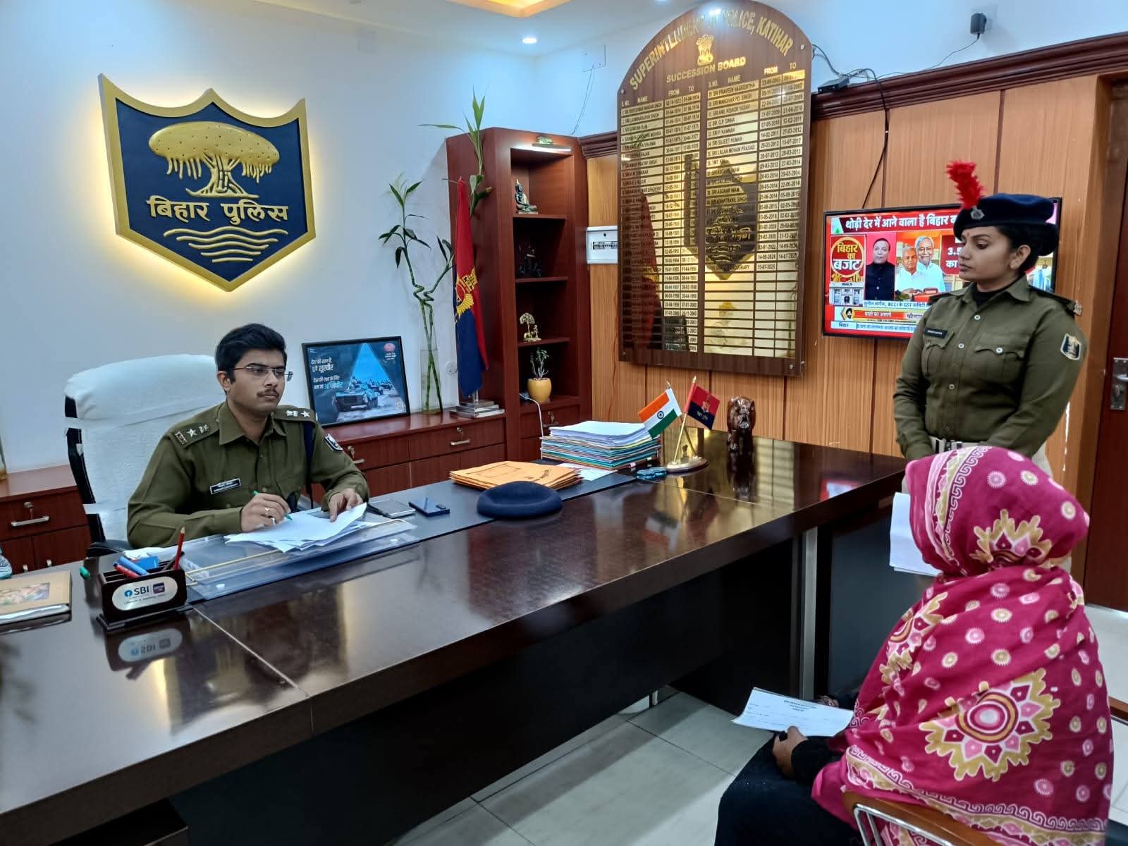 आमजन की समस्याओं के त्वरित एवं प्रभावी समाधान को लेकर कटिहार पुलिस प्रशासन लगातार सक्रिय भूमिका निभा रहा है। इसी क्रम में आज दिनांक 03 फरवरी 2025 को पुलिस अधीक्षक, कटिहार द्वारा आवेदकों की शिकायतें सुनी गईं।