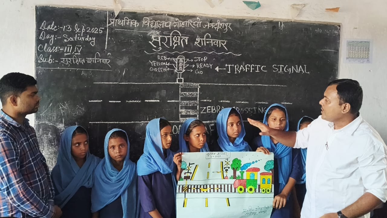 शिक्षक मो. इमरोज़ उद्दीन ने बच्चों को सड़क पार करने के दौरान अपनाए जाने वाले नियमों की जानकारी दी। उन्होंने समझाया कि सड़क पर हमेशा बाईं ओर चलना चाहिए, मोबाईल फोन पर बात करते हुए सड़क पार करना खतरनाक है, जेब्रा क्रॉसिंग का उपयोग करना चाहिए तथा यातायात संकेतों को पहचानकर ही सड़क पार करनी चाहिए। इसके साथ ही रेलवे क्रॉसिंग पर सावधानियां बरतने के उपाय भी विस्तार से बताए गए।