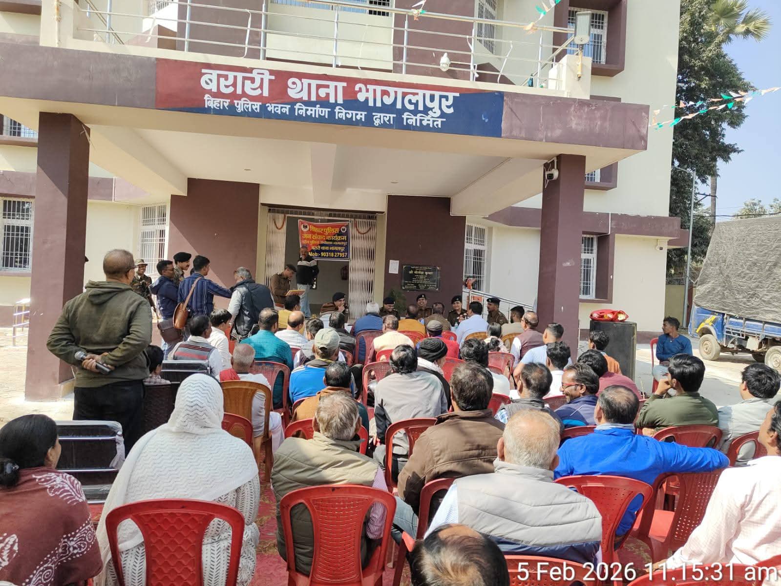 आज दिनांक 05 फरवरी 2026 को पुलिस और आम जनता के बीच संवाद को मजबूत करने की दिशा में एक महत्वपूर्ण पहल करते हुए पुलिस अधीक्षक नगर, भागलपुर द्वारा बरारी थाना परिसर में जनता दरबार का आयोजन किया गया। इस जनता दरबार में बड़ी संख्या में स्थानीय नागरिक उपस्थित हुए और उन्होंने अपनी-अपनी समस्याएं सीधे पुलिस अधीक्षक नगर के समक्ष रखीं।