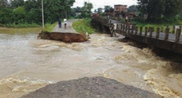 बहोरना पुल का डायवर्सन फिर टूटा, खेसर-तारापुर मार्ग पर यातायात पूरी तरह ठप