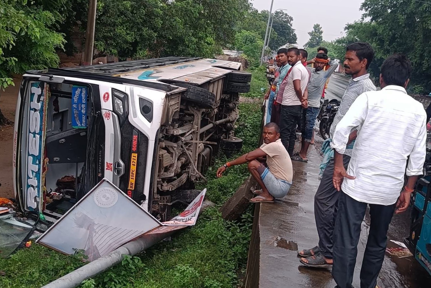 भागलपुर-हंसडीहा मुख्य मार्ग पर बड़ा सड़क हादसा, बस पलटी
