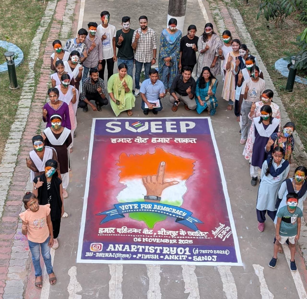 भोजपुर में फेस पेंटिंग प्रतियोगिता के माध्यम से युवाओं को मिला संदेश — “मेरा वोट, मेरा अधिकार”