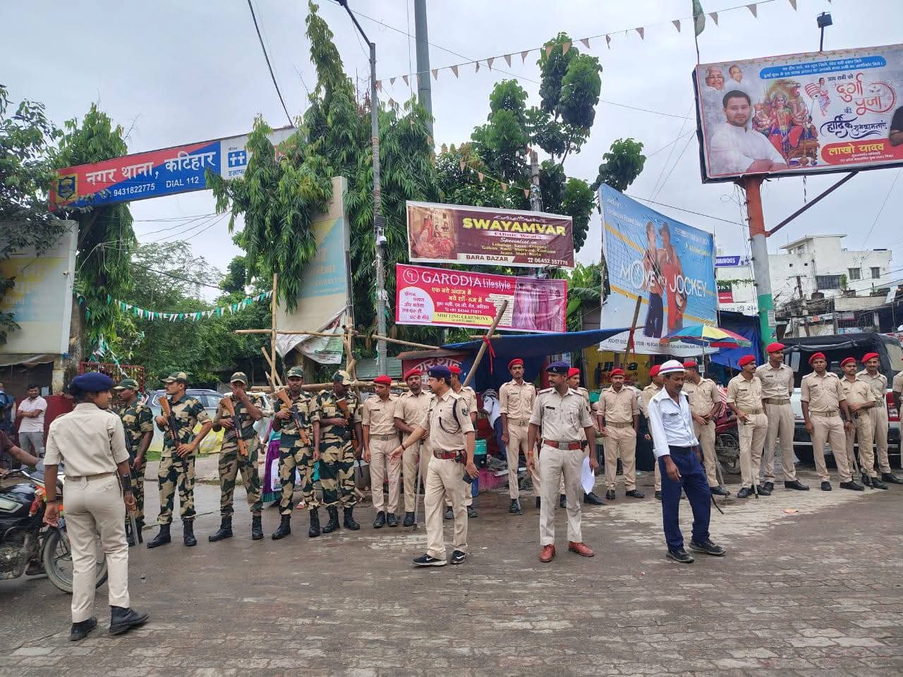 दुर्गा पूजा के अवसर पर आयोजित मूर्ति विसर्जन यात्रा को शांतिपूर्ण व सुरक्षित ढंग से संपन्न कराने के उद्देश्य से आज दिनांक 05 अक्टूबर 2025 को कटिहार जिले के शहरी क्षेत्र में थाना थानाध्यक्ष नगर द्वारा मुख्य मार्गों एवं संवेदनशील स्थलों का निरीक्षण किया गया।