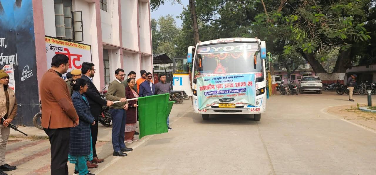 आज दिनांक 22 दिसंबर 2025 को जिला पदाधिकारी भोजपुर श्री तनय सुल्तानिया द्वारा मधुबनी में आयोजित होने वाले राज्य स्तरीय युवा उत्सव 2025–26 में सहभागिता के लिए भोजपुर जिले की टीम को हरी झंडी दिखाकर रवाना किया गया। इस अवसर पर जिला प्रशासन परिसर में उत्साहपूर्ण माहौल देखने को मिला।