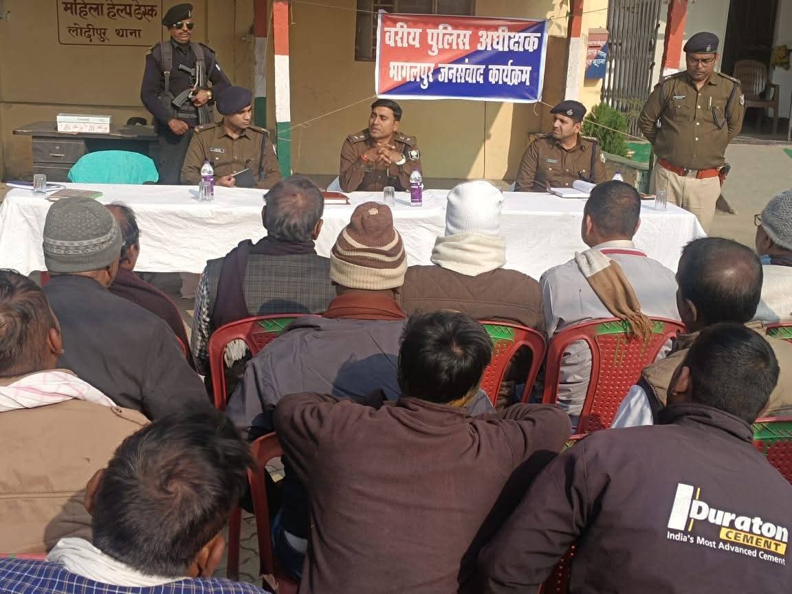भागलपुर, वरीय पुलिस अधीक्षक, भागलपुर द्वारा लोदीपुर थाना परिसर में आम जनता की समस्याओं के समाधान हेतु जनता दरबार का आयोजन किया गया। इस दौरान बड़ी संख्या में स्थानीय नागरिक उपस्थित हुए और उन्होंने अपनी समस्याएं व शिकायतें अधिकारियों के समक्ष रखीं।