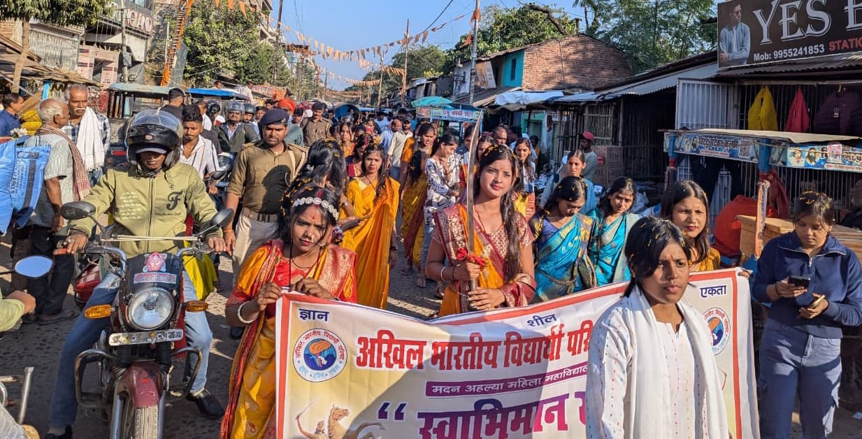 अखिल भारतीय विद्यार्थी परिषद (एबीवीपी) नवगछिया इकाई द्वारा मदन अहल्या महिला महाविद्यालय में मंगलवार को वीरांगना झांसी की रानी लक्ष्मीबाई की जयंती पर भव्य छात्रा संवाद एवं स्वाभिमान यात्रा का आयोजन किया गया। कार्यक्रम की शुरुआत महाविद्यालय परिसर में पारंपरिक दीप प्रज्ज्वलन के साथ हुई, जिससे पूरे वातावरण में ऊर्जा, उत्साह और श्रद्धा का संचार हुआ।
