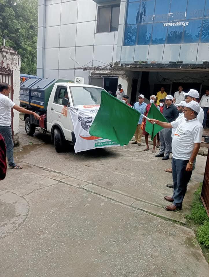 समस्तीपुर। स्वच्छ भारत मिशन-शहरी 2.0 के अंतर्गत समस्तीपुर नगर निगम द्वारा गुरुवार को “स्वच्छता ही सेवा” अभियान का भव्य शुभारंभ किया गया। नगर भवन परिसर से सभी सफाई वाहनों को हरी झंडी दिखाकर अभियान की शुरुआत की गई। इस अवसर पर नगर आयुक्त विजय प्रकाश मीणा (IAS) सहित जिला प्रशासन एवं नगर निगम के कई पदाधिकारी मौजूद रहे।