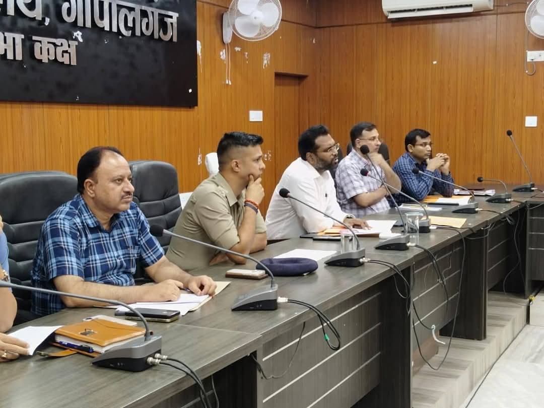गोपालगंज: जिला समाहरणालय सभागार में आज जिला पदाधिकारी श्री प्रशांत कुमार सी.एच. (भा.प्र.से.) की अध्यक्षता में एक महत्वपूर्ण समीक्षा बैठक आयोजित की गई। बैठक में पुलिस अधीक्षक श्री अवधेश दीक्षित, सभी अंचलाधिकारी, थानाध्यक्ष, खनन पदाधिकारी, उत्पाद अधीक्षक, नीलाम पत्र पदाधिकारी सहित विभिन्न विभागों के वरीय पदाधिकारी मौजूद रहे।
