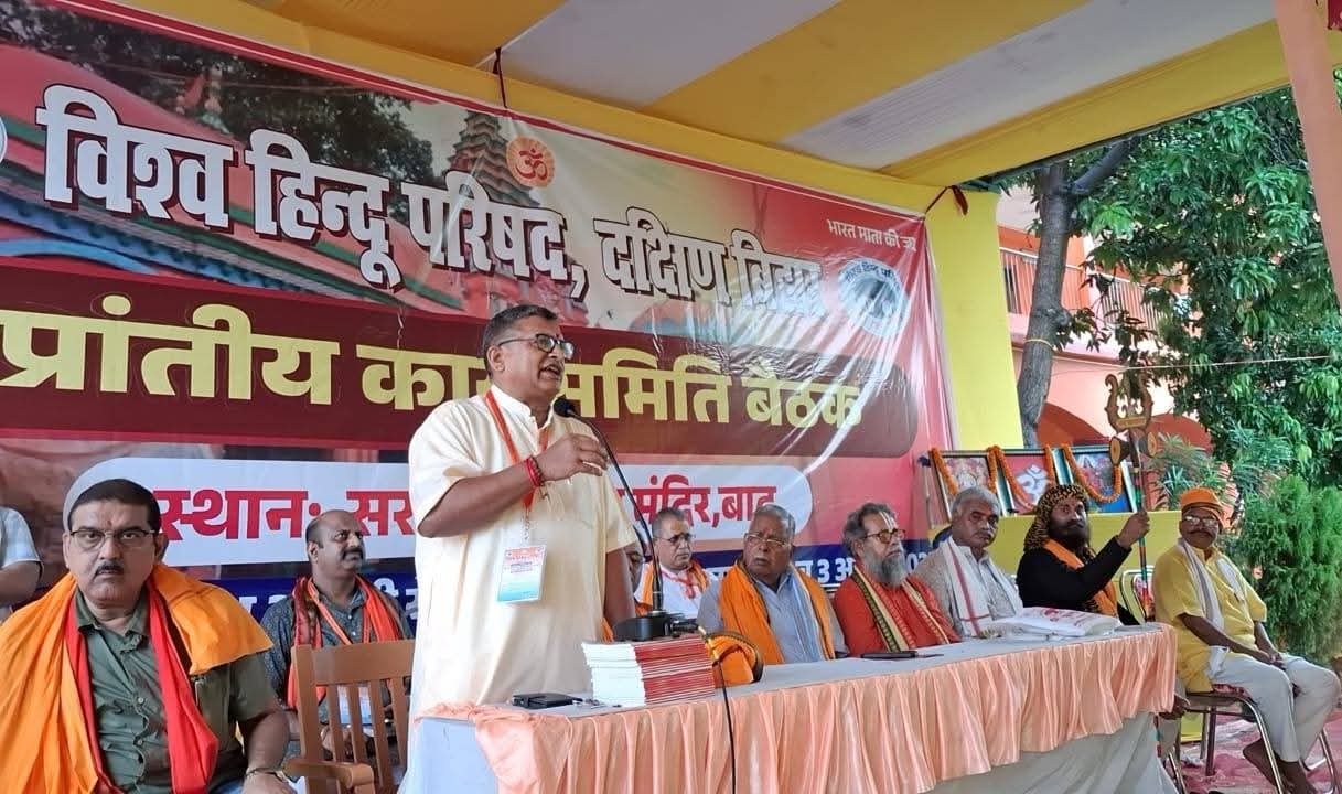 पटना (बाढ़)। सरस्वती विद्या मंदिर, गुलाबबाग में विश्व हिंदू परिषद दक्षिण बिहार की तीन दिवसीय प्रांत कार्यसमिति बैठक का समापन रविवार को हुआ। इस आयोजन में दक्षिण बिहार के 24 जिलों से विहिप, बजरंग दल, दुर्गा वाहिनी, धर्म प्रसार और सेवा विभाग के सैकड़ों कार्यकर्ता शामिल हुए।