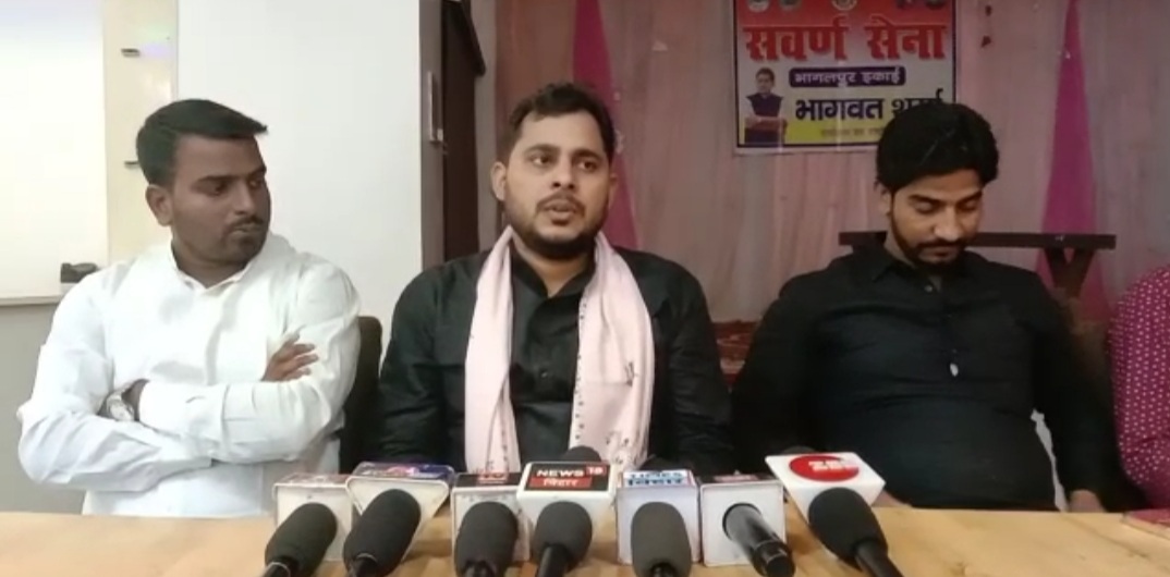 भागलपुर,स्वर्ण सेना के राष्ट्रीय अध्यक्ष भागवत शर्मा एक दिवसीय दौरे पर पहुंचे। यहां उनका कार्यकर्ताओं ने स्वागत किया। वही उन्होंने प्रेस वार्ता कर बताया कि कुछ लोग स्वर्ण समाज के लोगों को दलित समाज का दुश्मन बता रहे हैं, और दलितों को डराने का काम कर रहे हैं। उन्होंने कहा कि यह सर गणेशन का बिहार है उन्होंने कई शिक्षक संस्थान और अस्पताल का निर्माण किया है। जहां सभी समाज के लोगों के बच्चे पढ़ते हैं। वहीं उन्होंने कहा कि 13 जनवरी को पटना में सर गणेशन की जयंती मनाई जाएगी। इसको लेकर वह कार्यकर्ताओं को यहां पर निमंत्रण देने के लिए आए हुए हैं। वहीं उन्होंने मांग की है कि स्वर्ण समाज के छात्रों को उम्र सीमा में छूट दी जाए।