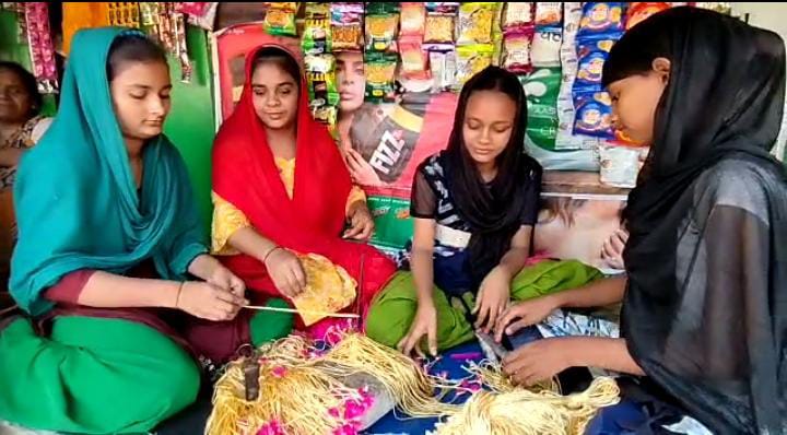 भागलपुर, लोक आस्था का महापर्व छठ के अवसर पर आपसी सद्भाव, भाईचारा और सौहार्द्र अगर देखना हो तो आप भागलपुर के काजीचक खरादी टोला पन्नामील वार्ड नंबर 45 जरूर आएं क्योंकि हिंदू का सबसे बड़ा आस्था का पर्व छठ पर्व में मुस्लिम समुदाय की महिलाओं का बहुत बड़ा योगदान है। काजीचक खरादी टोला के रहने वाली बीवी यासमीन ,आशिया, मेहर ,साजिया,नाज़मा, आफताब ने गंगा जमुनी तहजीब को चरितार्थ किया है, कहां जाता है हिंदू धर्म में बद्धि (सूत की माला ) का उपयोग ऐसे प्रसाद के तौर पर हिंदू धर्म के लोग करते हैं जो पूरे शरीर का रक्षा कवच माना जाता है और उसे पूरे नेम निष्ठा और पाक साफ तरीके से तैयार करने में मुस्लिम महिलाओं का हाथ है ,छठ पर्व में पवित्रता का विशेष महत्व है, जिस मुस्लिम परिवार की महिलाएं छठ पर्व के लिए बद्दी का निर्माण करती हैं उनके घर में एक महीने पहले से ही मांस और लहसुन प्याज खाना वर्जित हो जाता है, वह पाक साफ होकर हिंदू धर्म के आस्था पर विश्वास करते हुए पूरी नेम निष्ठा से बद्दी का निर्माण करते हैं, मुख्य रूप से महिलाएं इसमें बढ़-चढ़कर हिस्सा लेती हैं ।सामाजिक सद्भाव और समरसता का ऐसा दूसरा उदाहरण सनातनी पर्व त्यौहार में नहीं दिखता, सभी जाति संप्रदाय के लोग सिर्फ पवित्रता और समर्पित भाव से एकाकार होकर आस्था के अथाह सागर में डुबकी लगाते नजर आते हैं, पवित्रता के बावजूद पूजन सामग्री बेचने और लेने वालों के भाव भी खत्म हो जाते हैं , ऐसे ही भावों से लैस भागलपुर का दर्जनों मुस्लिम परिवार भी छठ पूजा के कार्यों में तल्लीनता से लगे नजर आते हैं ,भागलपुर के काजीचक, लोहापट्टी , हुसैनाबाद नाथनगर के तकरीबन 50 से 60 मुस्लिम परिवार महीनों छठ पूजा आने का इंतजार करते हैं, यह परिवार छठ पूजा में कच्चे बांस के बने सूप पर चढ़ाने वाले बद्दी का निर्माण करते हैं ,दिल्ली और कोलकाता से कच्चा माल में किरची धागा मंगवा कर पूरे परिवार के साथ यह लोग छह महीने पहले से ही बद्दी निर्माण में जुट जाते है ।