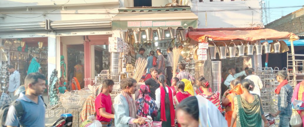 धनतेरस पर खरीदारी करने को लेकर बाजारों में उमड़ी भीड़।